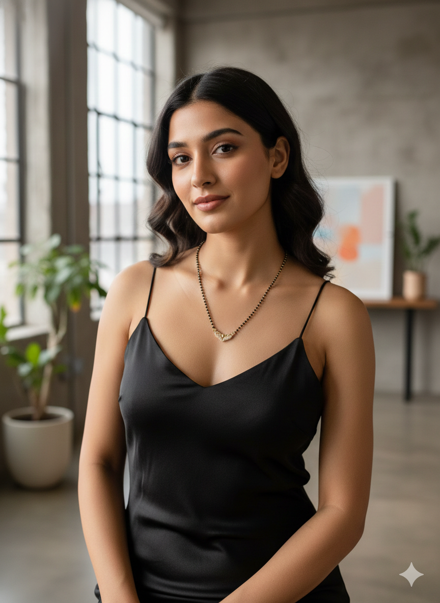 Versatile Styling: The sleek, “V-shape” pendant creates an elongated neckline effect, making it the perfect accessory for deep-neck western tops, formal shirts, or traditional silk sarees.