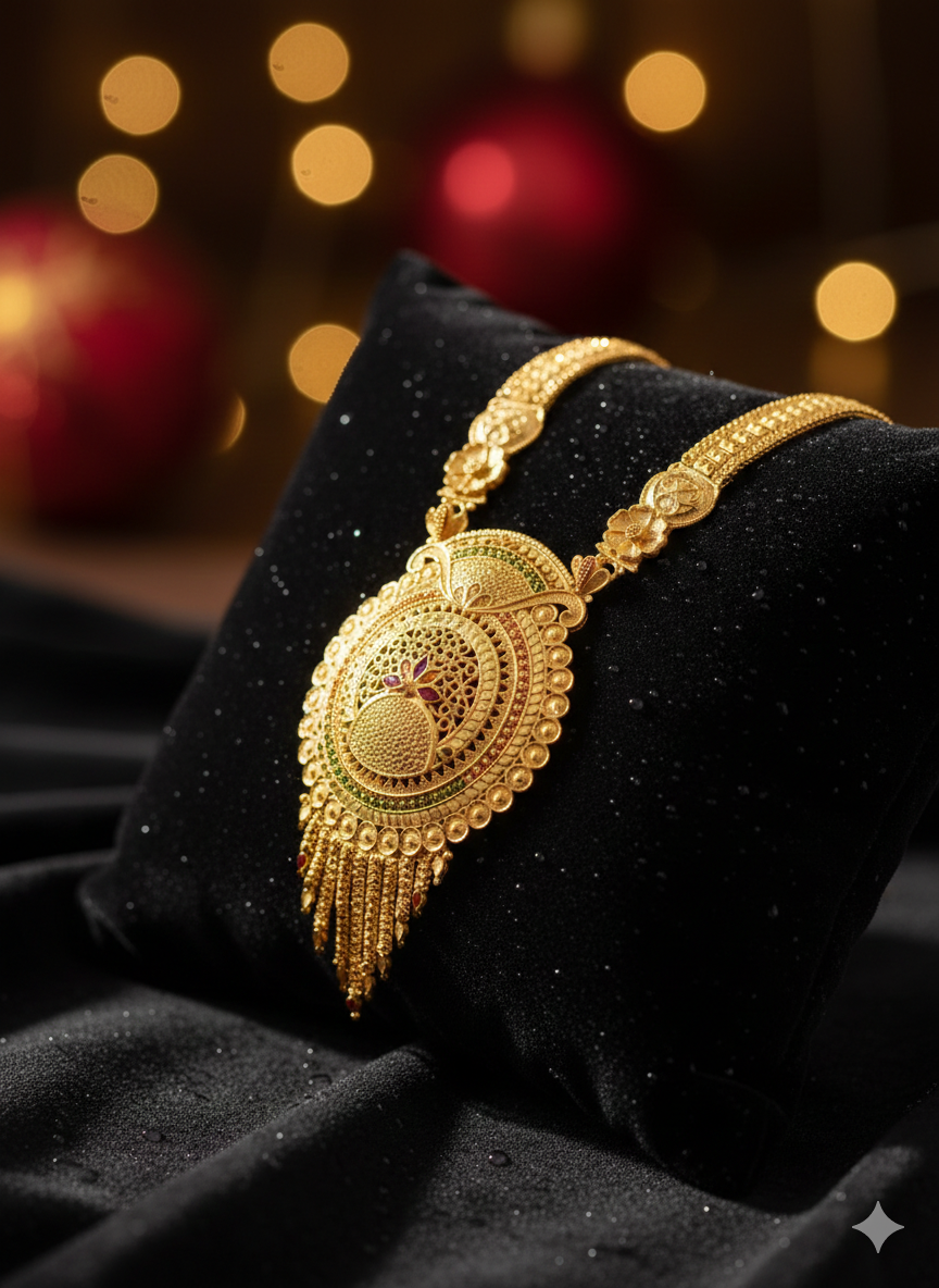- Auspicious Design: Features iconic black beads (moti) believed to ward off negative energy and symbolize marital bliss.